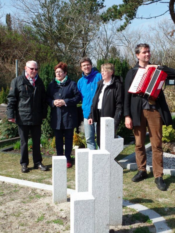 So übergab nun die Juist-Stiftung am 12.04.2015 offiziell das anonyme Grabfeld auf dem Dünenfriedhof den Juister Bürgern. Hierzu kamen auch der Bürgermeister der Inselgemeinde, Dietmar Patron, Thomas Vodde von der Kurverwaltung sowie die Mitarbeiterinnen und Mitarbeiter der Verwaltung, vom Bauhof und Mitglieder des Gemeinderates. Vertreterinnen und Vertreter der Ev. und Kath. Kirche, sowie Juister Gäste, Mitbürgerinnen und Mitbürger waren zahlreich erschienen. Kantor Stephan Reiß untermalte die Übergabe mit Klängen auf dem Akkordeon.