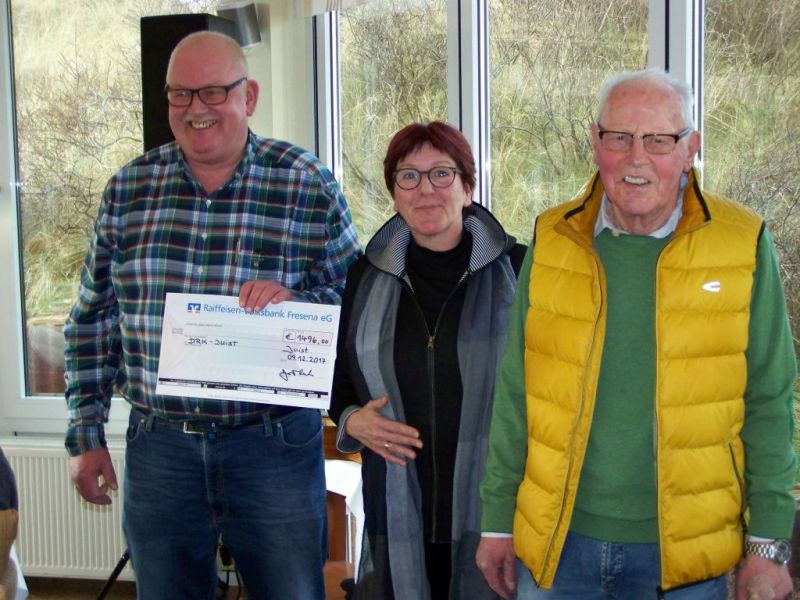 Schon seit einigen Jahren kann die Juist-Stiftung beim Insel-Musikfest im Oktober einen Scheck der Marketing-Abteilung der Inselgemeinde in Empfang nehmen. Pro T-Shirt, das Teilnehmer der Inselläufe erwerben, werden zwei Euro an die Juist-Stiftung abgegeben. 2016 waren das 1278 Euro und im Jahr 2017 kamen sogar 1496 Euro zusammen. „Wir haben in der Vergangenheit schon verschiedene Zielgruppen gefördert und wollten uns jetzt schwerpunktmäßig den auf Juist aktiven Rettern zuwenden“, erklärt Inka Extra, Vorstandsvorsitzende der Juister Bürgerstiftung. Den letztjährigen Beitrag teilten sich die DGzRS-Station und die Rettungsschwimmer. Dieses Jahr überreichte der Stiftungsvorstand den kompletten Betrag an den DRK-Vorsitzenden Hans-Ludwig de Vries. „Wir bedanken uns damit für die kontinuierliche Unterstützung durch den Ortsverein des DRK. Sowohl beim großen Stiftungsjubiläumsfest 2016 waren Sie beteiligt als auch regelmäßig bei unserer Frühjahrsaktion an den Goldfischteichen.“