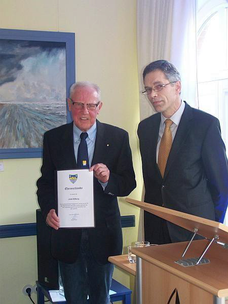 Die Laudatio auf die Geehrten hielten die beiden stellvertretenden Bürgermeister. Jens Heyken machte den Anfang und ging mit humorvollen Worten („Eine Auszeichnung für eine ausgezeichnete Wehr“) auf das erfolgreiche Wirken der Freiwilligen Feuerwehr Juist ein. Die Juist-Stiftung war die zweite Institution, die eine Ehrenurkunde erhielt.