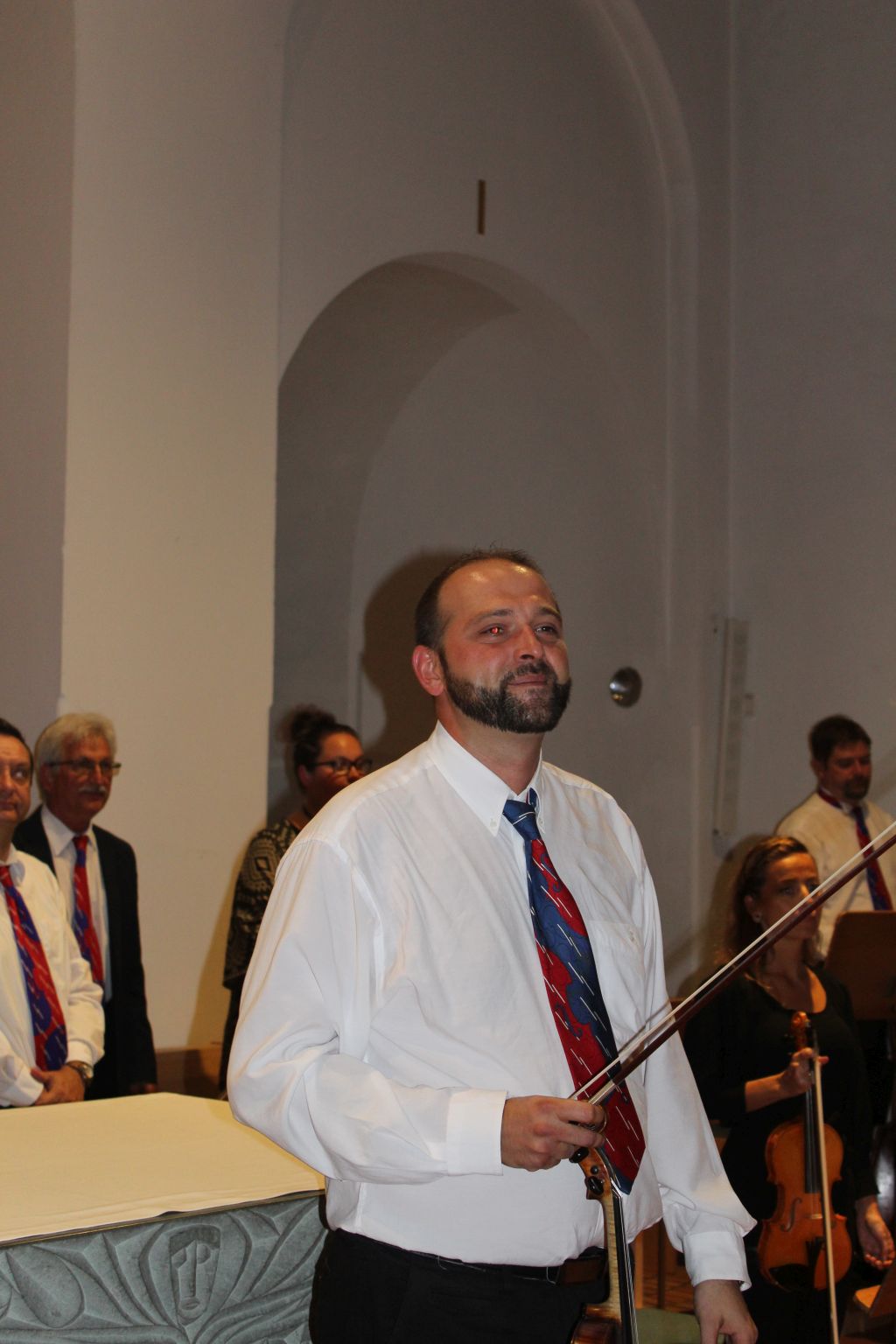 Es folgten weitere Stücke, so der 2. Satz aus dem Winter des Vier-Jahreszeiten-Zyklus von Vivaldi, ein heiteres Menuett von Bocherini und eine Serenade von Haydn. Einen raumfüllenden Klang in der Inselkirche, die zudem eine sehr gute Akustik aufweist, boten die Musiker dann mit der „Matinatta“ von Ruggero Leoncavallo; und viel Beifall für den Cellisten Zoltán Szabó gab es dann für ein weiteres „Ave Maria“ von Franz Schubert. Mit der „Kirchen Szene“ aus der „Cavalleria Rusticana“ von Pietro Mascagni und „Aus Mozarts Reich“ von Ernst Urbach endete das Konzert schließlich. Nicht unerwähnt bleiben sollten die Musiker, die nicht als Solisten, aber als eigenständige und zuverlässige Begleiter dabei waren, so Zoltan Biró am Bass, Ion Pintea auf der Klarinette und Orchesterleiter Gabor Bedö. Sein Schlagzeug war bei dieser Kammermusik zwar weniger gefragt, aber er wirkte zugleich als Moderator, der durch das Programm führte.