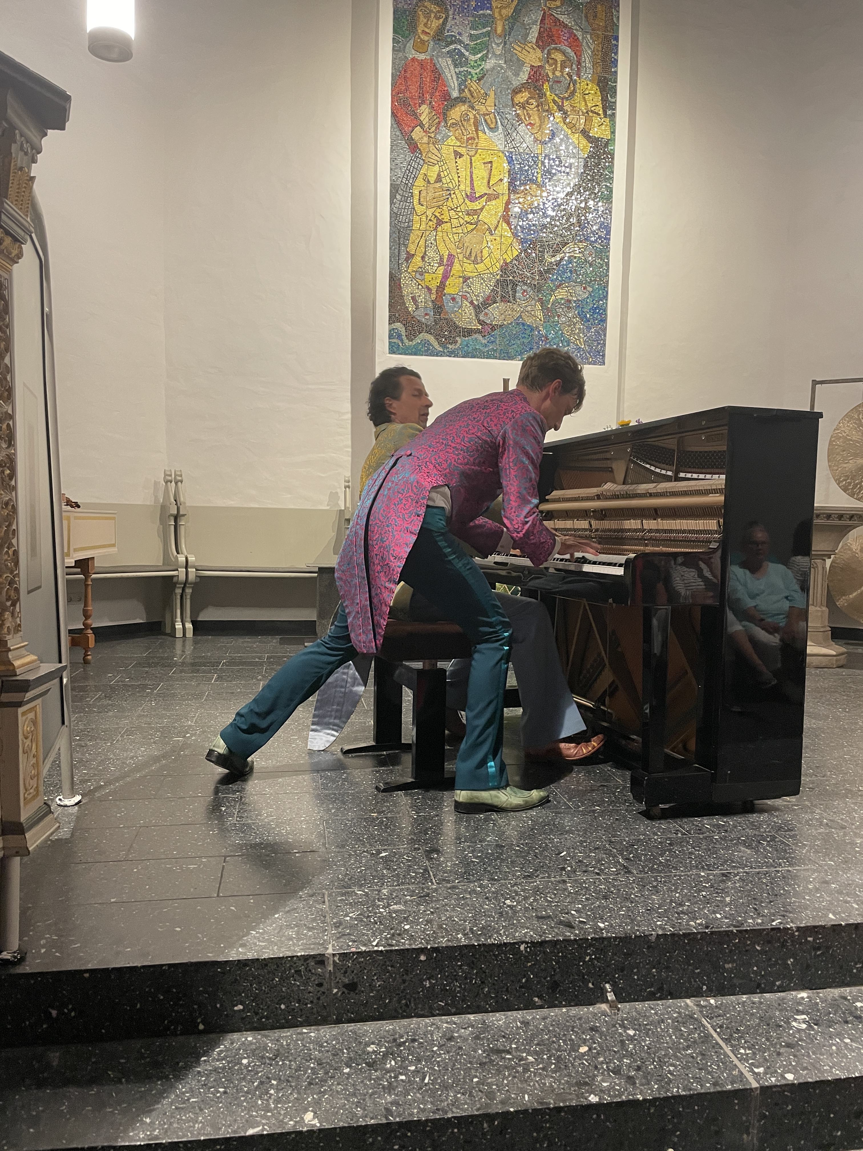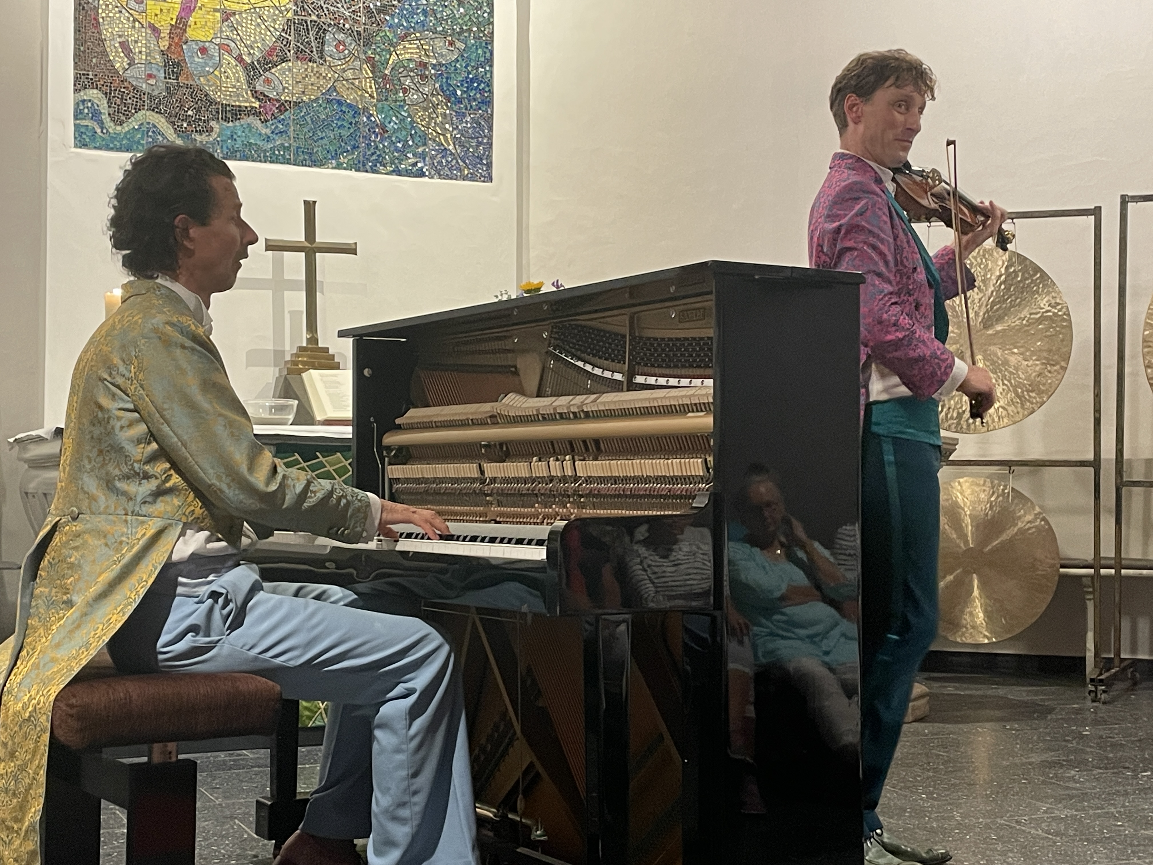 Das Schweizer Duo präsentierte in seinem anderthalbstündigen Programm an die 100 Zitate aus Melodien der Klassik und der Popmusik. Es war geprägt von außerordentlicher Power, dem Witz und der teils nonverbalen Kommunikation untereinander und mit dem Publikum. Die vielseitigen Musiker überraschten das Publikum während des Konzerts, indem sie ihre Instrumente tauschten, vierhändig Klavier oder sogar beide Violine spielten. Melodien aus der Klassik wurden mit Popmusik so vereint, dass kaum noch erkennbar war, ob hier Klassik zum Popsong wurde oder die Popmusik zur Klassik mutierte.